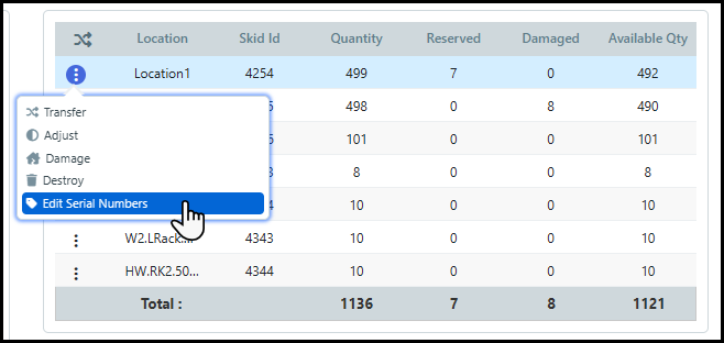 5 Choose Edit Serial Numbers from the Quick Access Menu.