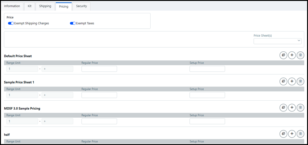 3 Configure the pricing on the selected price sheet(s).