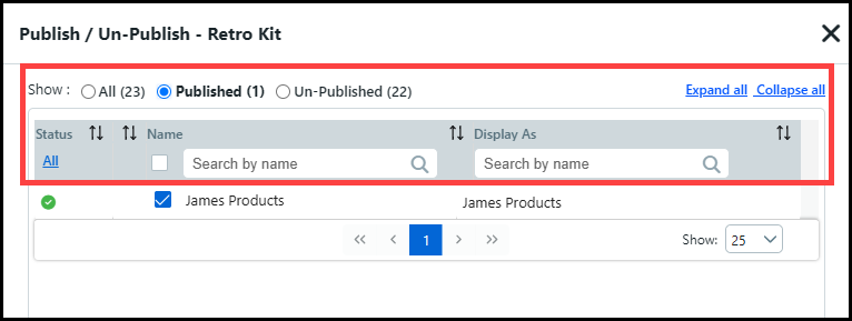You can filter the Publish/Un-Publish table