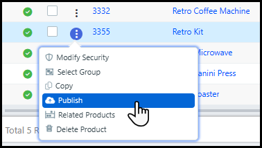 2 Locate the product you want to publish and hover on the quick access menu.